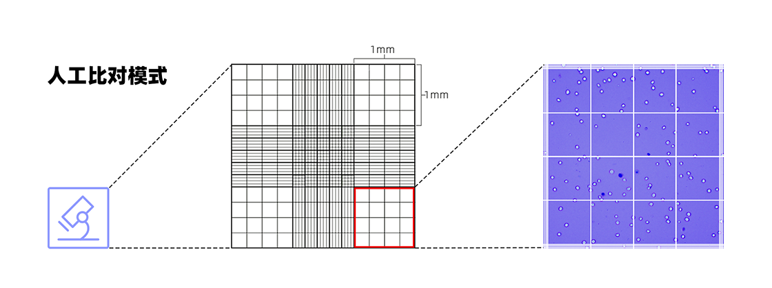 ③儀器內(nèi)置虛擬刻線(1×1mm,復(fù)刻血細胞計數(shù)板刻線),可人工復(fù)核數(shù)據(jù)的準(zhǔn)確性和真實性。