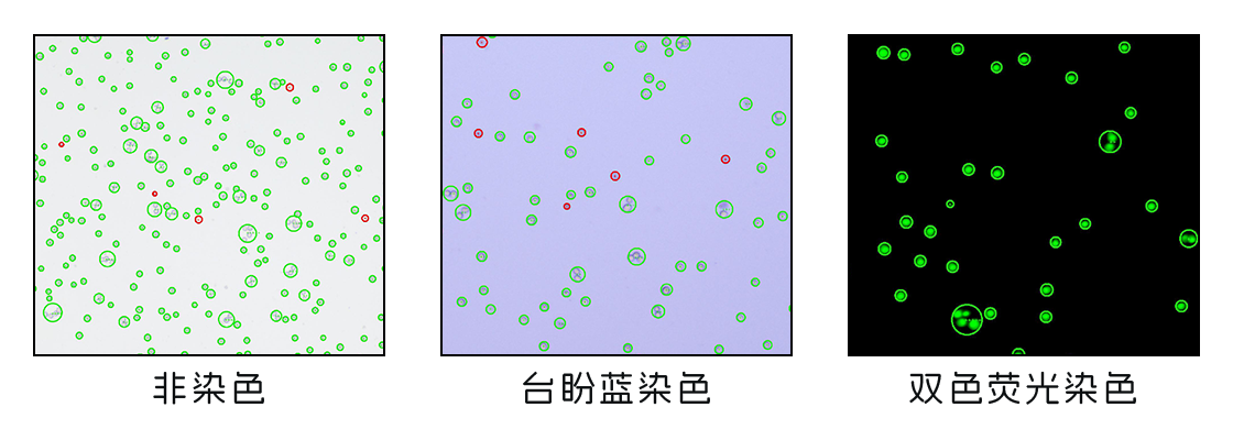 2-智能準(zhǔn)確——儀器內(nèi)置全新光學(xué)放大系統(tǒng),結(jié)合智能軟件圖像識別技術(shù),提供更準(zhǔn)確的細(xì)胞圖像計(jì)數(shù)分析結(jié)果(下方為儀器實(shí)拍案例圖)。