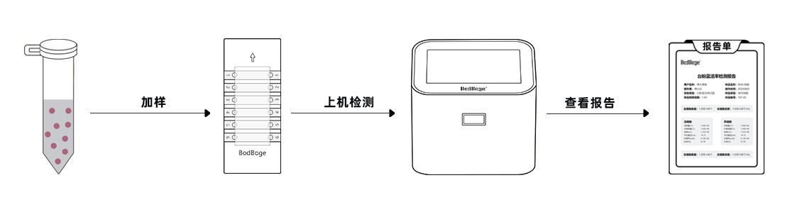 3-快速計(jì)數(shù)——超快速細(xì)胞計(jì)數(shù)活率分析,數(shù)秒內(nèi)儀器即可完成細(xì)胞圖像采集、識別分析活/死細(xì)胞功能(下方為儀器操作流程圖)。