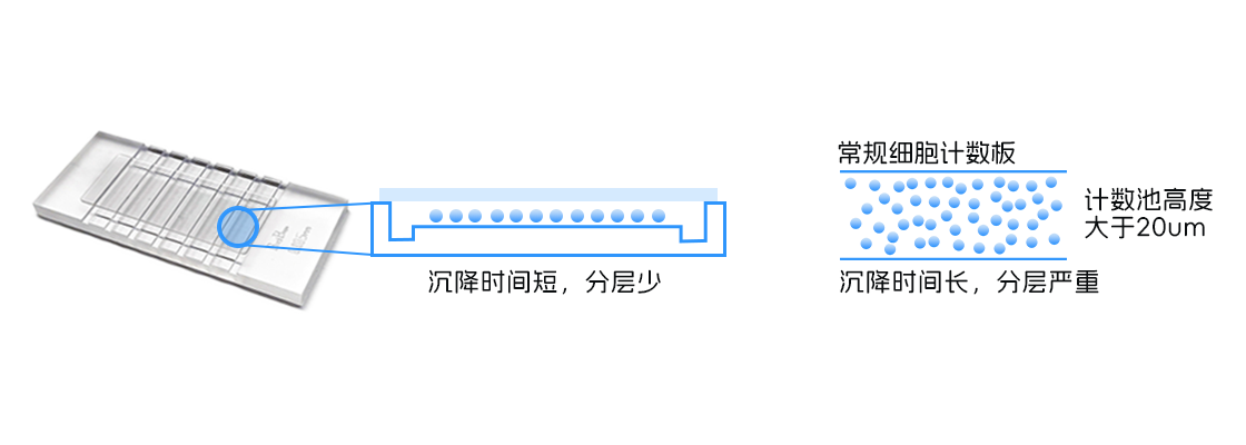 儀器適配專用計數(shù)板-高通量、計數(shù)池高度更低,可加速細(xì)菌等小顆粒的沉降,有效解決菌液分層問題。